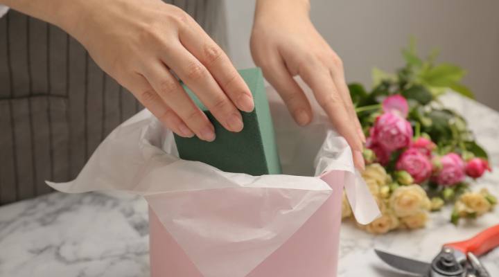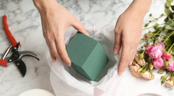 オアシスとは、フラワーアレンジメントで花を固定し、水を供給するための吸水性スポンジです。