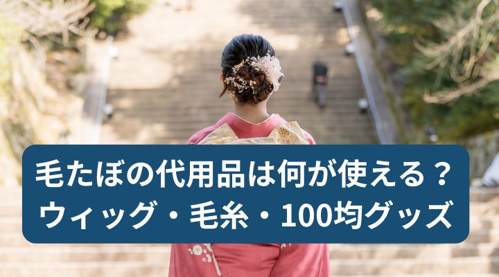 毛たぼが手元にない場合でも、ウィッグや毛糸、羊毛フェルトといった身近な代用品を活用すれば和装ヘアアレンジが可能です。